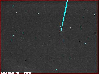 Jasný meteor nad východným obzorom 31.1.2018 o 01:11UT. Na meteorte pekne vidno fragmentáciu meteoroidu počas preletu a rôzny vplyv odporu vzduchu na jednotlivé fragnenty. Autor: Peter Dolinský.