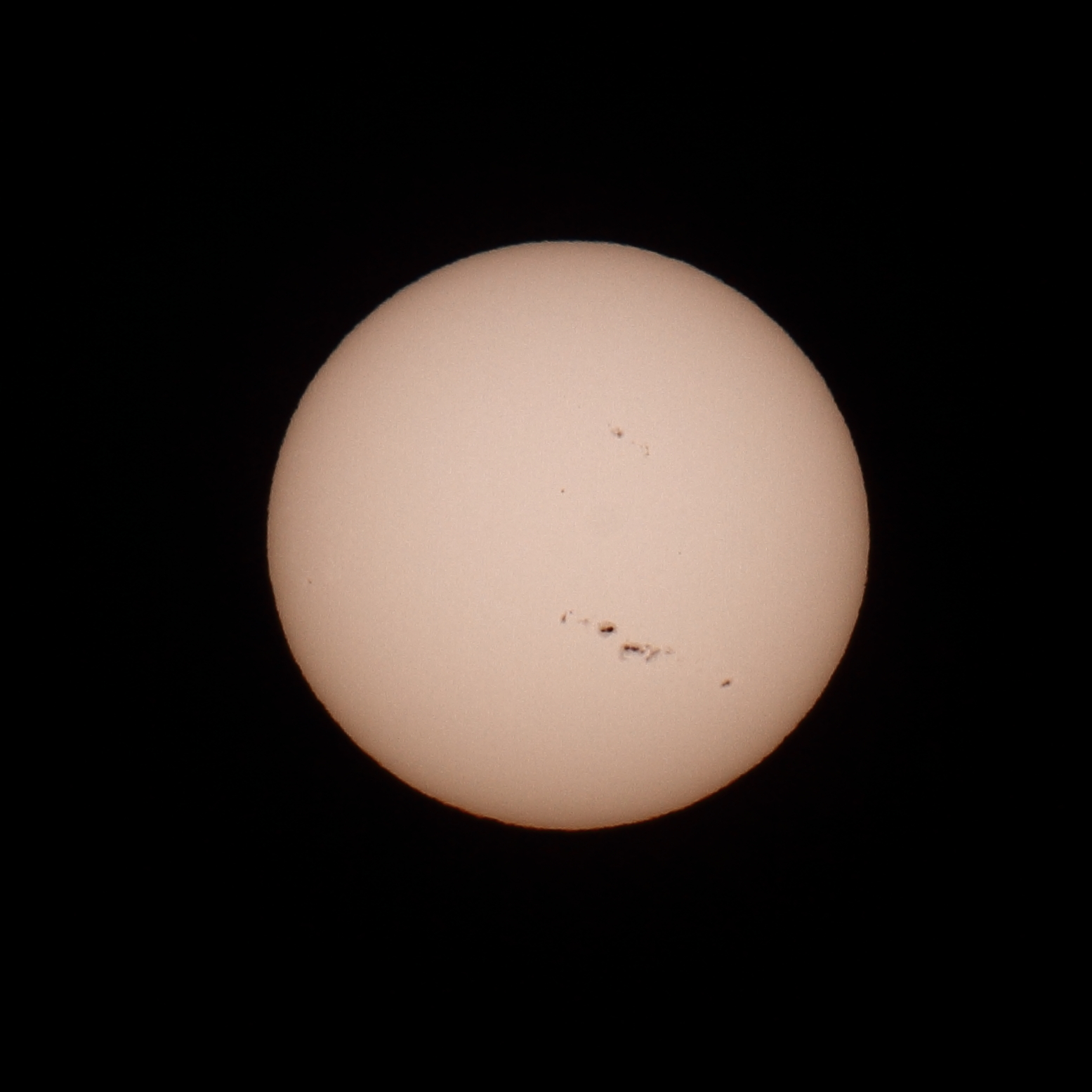 Skupina slnečných skvŕn, ktorú je možné v týchto dňoch vidieť aj voľným okom. Použite vhodný filter na ochranu zraku.Nepoužívajte ďalekohľad napozorovanie Slnka, ktorý nie je na to výrobcom určený. Hrozí oslepnitie!!!. 6.11.2025. Autor: Peter Dolinský