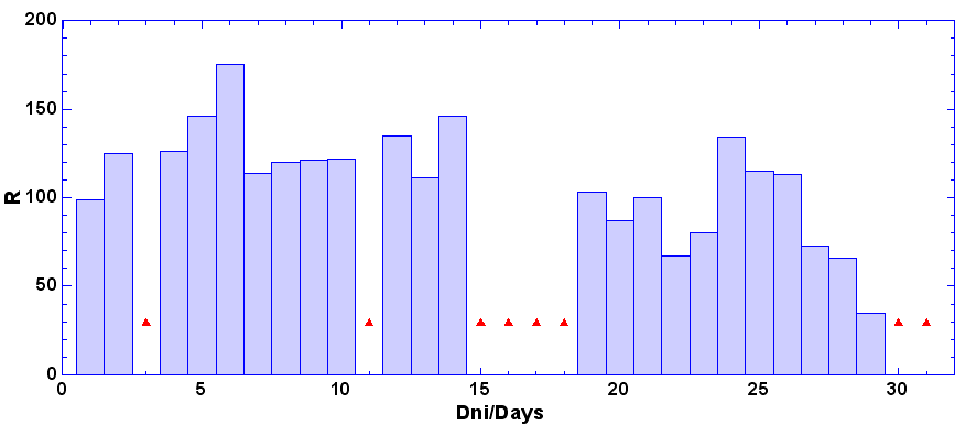 - dni, keď nebolo pozorovanie - zamračené, technické príčiny a pod.