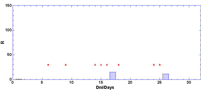 - dni, keď nebolo pozorovanie - zamračené, technické príčiny a pod.