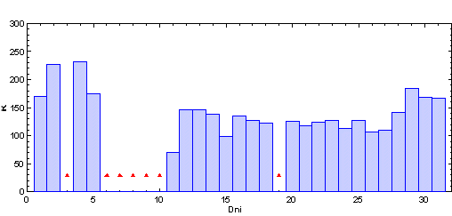 vždy od 6.00 hod UT daného dňa po 6.00 hod UT nasledujúceho dňa. Škála